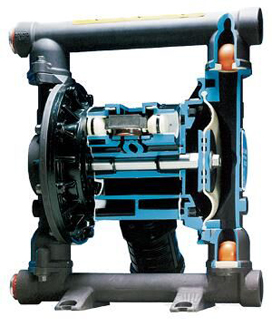 氣動雙隔膜泵的特點和單隔膜泵的類似,只不過雙隔膜泵指雙吸液腔,單隔膜泵就一個吸液腔。但是,隔膜泵壓力無法提高,被氣源壓力限制。隔膜泵流量通常不會太大,多數應用在小系統中。跟傳統用在大流量的離心泵還是有使用場合上的不同。